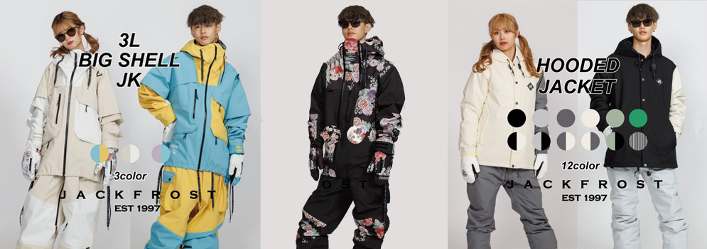 日本 ONYONE 株式會社憑著滑雪服裝設計多年的經驗, 近年推出旗下滑雪服品牌 Jack Frost, 主要是針對 Snowboarder 街頭板仔風格,設計有別於 ONYONE 傳統專業競賽滑雪服。
